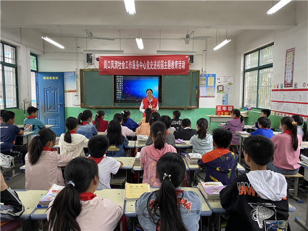 为庆祝建党100周年,强化爱国主义教育,进一步推进党史学习教育走深、走实,5月14日,淮阳区临蔡镇党委联合周口风润社会工作服务中心走进临蔡小学,积极将党史知识送进校园、送进课堂。