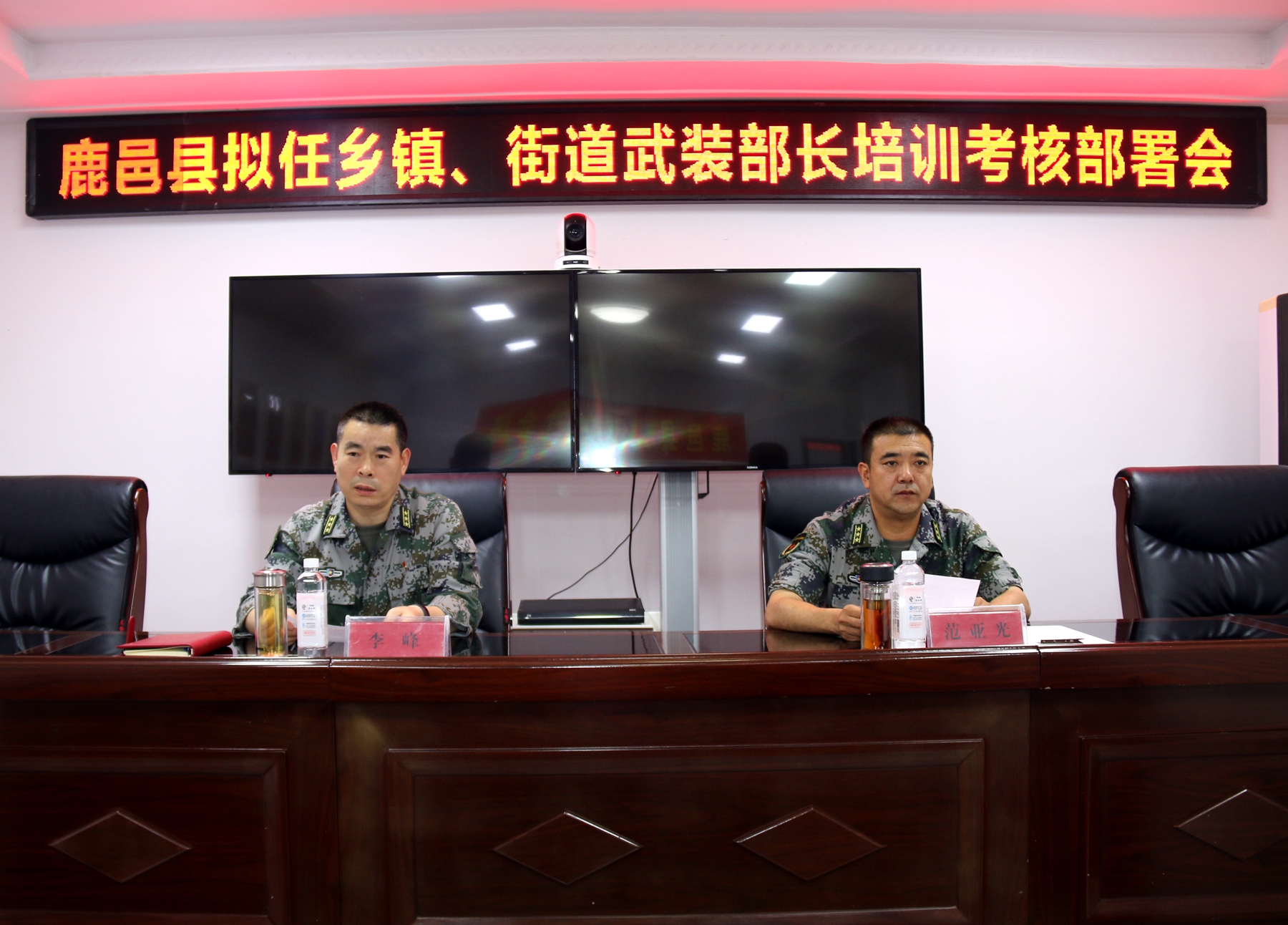 5月17日下午,鹿邑县人武部在机关一楼会议室组织召开拟任乡镇、街道武装部长培训考核部署会,组织新任职基层武装部部长进行集体谈心,传达上级指示精神,部署培训考核工作。县人武部部长范亚光、政委李峰出席会议。县人武部机关现役干部、文职人员、职工和新任职专武干部参加会议。