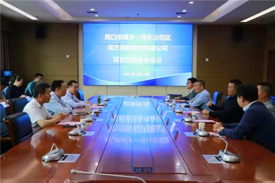 5月14日,周口市城乡一体化示范区(简称示范区)与锦艺控股集团有限公司项目洽谈合作会议召开。示范区党工委书记闫立超、管委会主任张建党、副主任李培华出席会议。锦艺控股集团有限公司董事局主席陈锦焰带领锦艺控股集团有限公司领导团队参加会议。