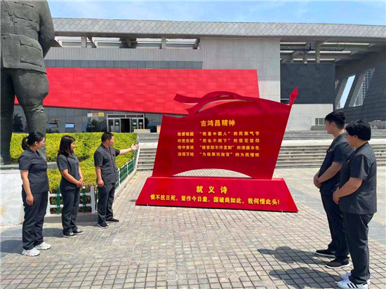 吕潭人民法庭因地理位置之便,经常组织党员干部到吉鸿昌故居、吉鸿昌纪念馆参观学习,学习他热爱祖国“我是中国人”的民族气节;学习他对党忠诚“死也不倒下”的坚定信仰;学习他恪守家训“做官即不许发财”的清廉本色;学习他造福百姓“为做事而做官”的为民情怀。每一次回顾都能深刻感受到吉鸿昌将军的为国情怀,每一次学习都受到了心灵震撼和精神洗礼,干警们纷纷表示,要坚定理想信念、严守纪律规矩、筑牢政治忠诚、凝聚奋进力量,传承吉鸿昌将军爱国精神,做一名干净纯洁担当有为的法庭干警。