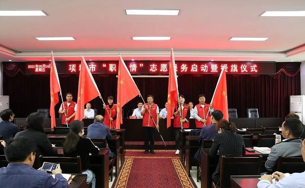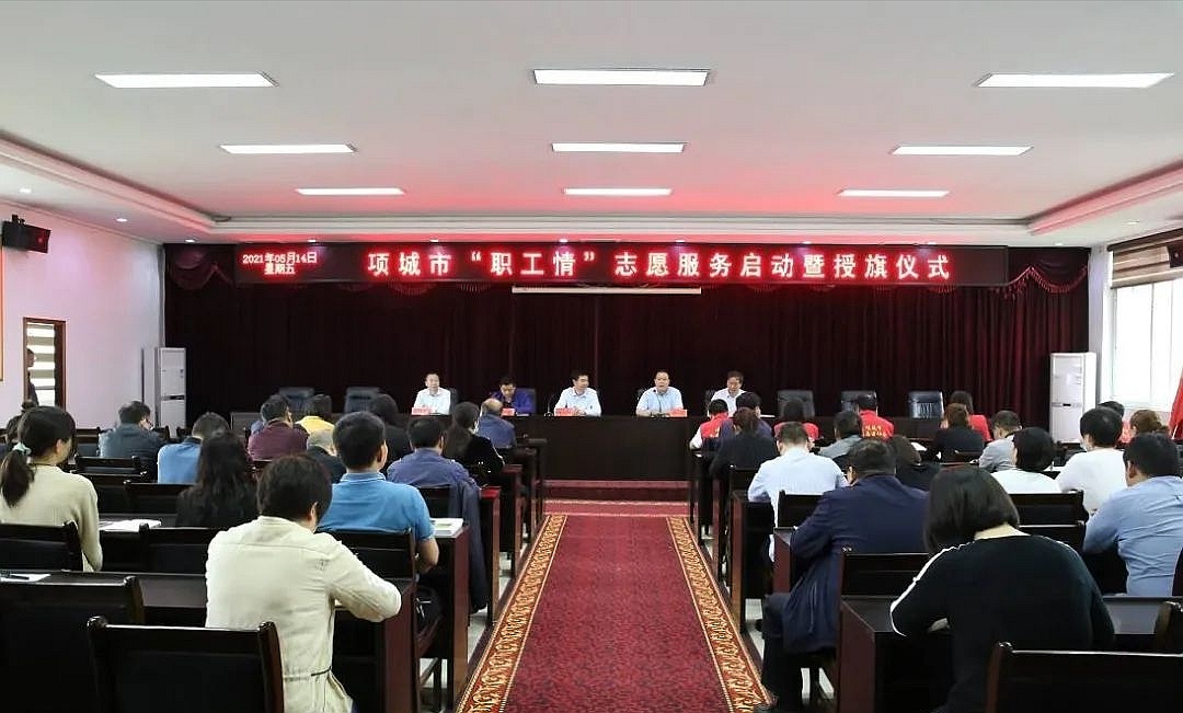近日,项城市总工会举办创建全国文明城市、国家卫生城市、全国双拥模范城职工志愿服务活动启动暨授旗仪式,动员全市广大职工踊跃参与到“三城联创”当中并积极行动起来,成为宣传者、推动者。项城市人大常委会副主任、总工会主席刘玉世出席会议并讲话。市总工会党组书记、常务副主席田雨主持启动仪式。
