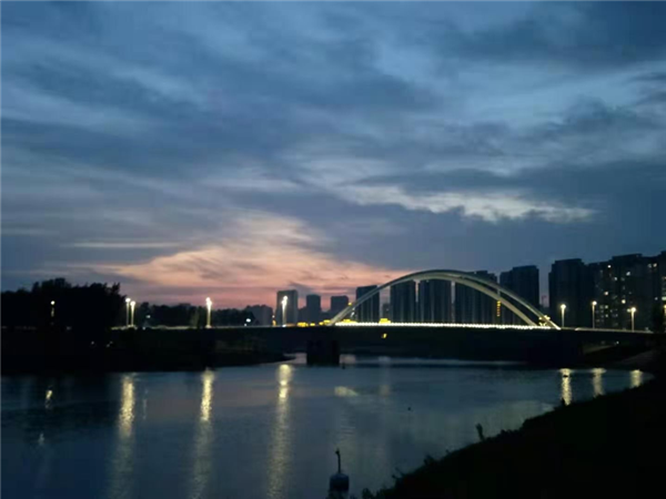 周口因水而有了灵气,因桥梁而有了诗意。夜晚,静谧的沙颍河上,站在中心城区大庆路高楼之上,向沙颍河畔举目远眺。作为不可或缺的交通主动脉,八一大道桥、大庆路大桥,同刚通车的中原路跨沙颍河大桥比肩而立,桥上霓虹闪烁,岸上流光溢彩,像一串串闪光的珠链,将沙颍河装扮得分外璀璨。不远处,鏖战中的七一路跨沙颍河大桥策马扬鞭,城区又一处便捷的动脉大通道计日可期。