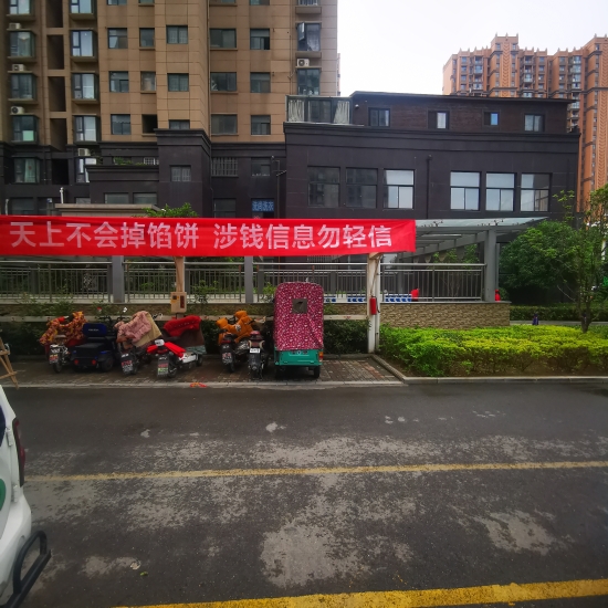 据介绍,“金色东方”小区建成于2014年,占地120亩,居住人口2516户,共8176人。广场是小区里最热闹的地方。这里不仅摆放着诈骗案例展板,而且LED大屏上反复播放“局长说反诈”视频,时刻提醒居民绷紧防诈弦。通过张贴标语、摆放展板、播放视频等形式,“金色东方”小区营造了全方位反诈的浓厚氛围,基本达到“处处有提醒”的效果。据悉,2月份以来,该小区未发生一起电信网络诈骗案件。
