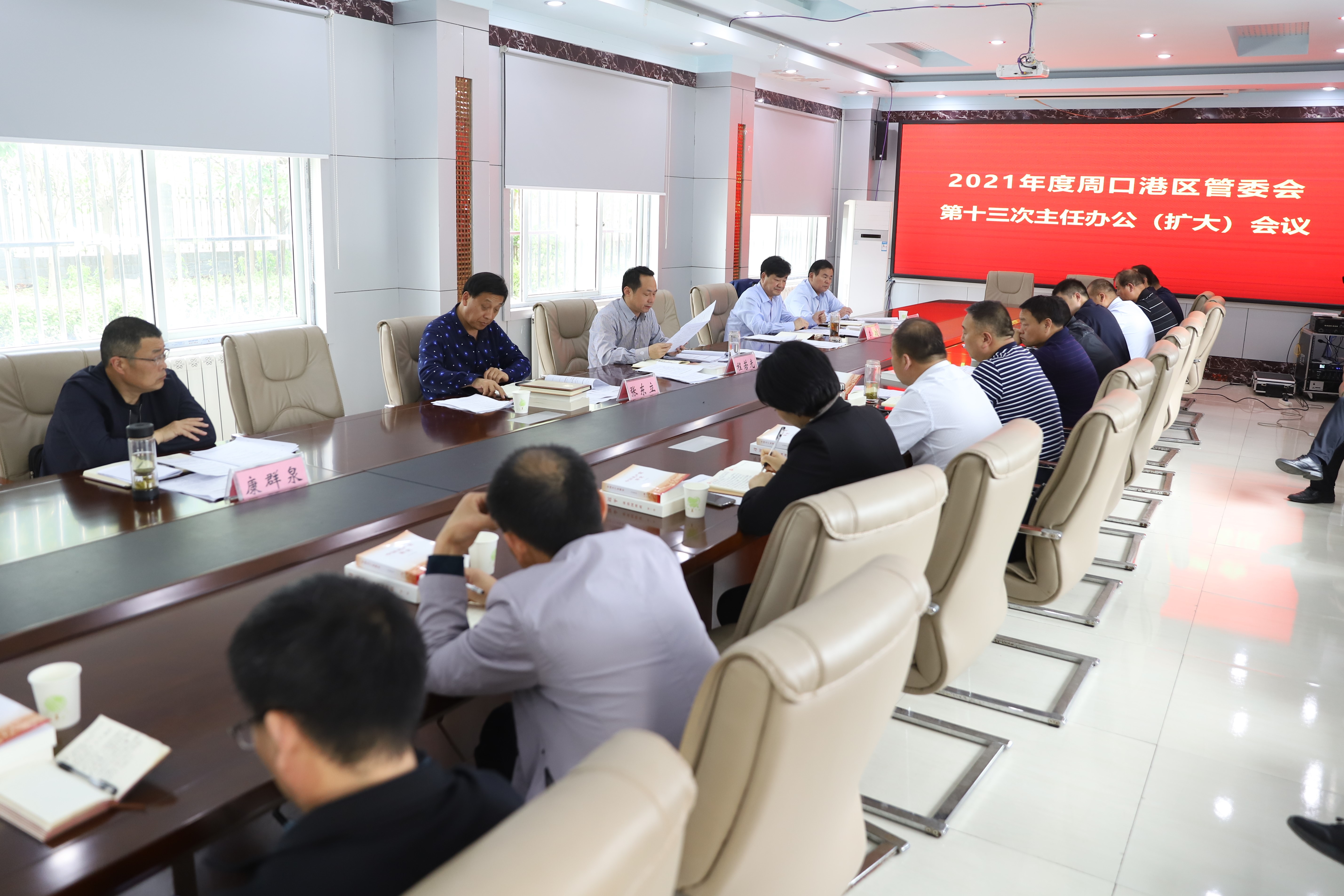 5月19日,周口港区管委会主任程若光主持召开2021年第十三次主任办公会,集中学习党史和党的理论知识,研究部署港区近期重点工作。港区领导张东立、李翔、刘学庆、康群泉出席会议。