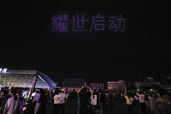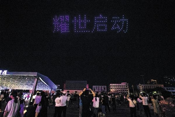 晚8时许,主持人简短提示后,观众自觉往最佳观赏区移动,表演正式开始。200架无人机倏地腾空而起,列队升至120米高空。夜幕下200架无人机宛如200颗繁星,眨着眼煞是逗人,很快部分无人机瞬间消失,余下的无人机组成“你好周口”四个大字向现场观众致意,活动问好篇完美上演。按照程序,无人机凌空飞舞,很快呈现一个蓝色手指点亮图案,观众不约而同发出惊奇声。无人机呼呼作响,观众仰望夜空,一刻也舍不得错过,有的还举着手机记录下这美妙而精彩的过程。
