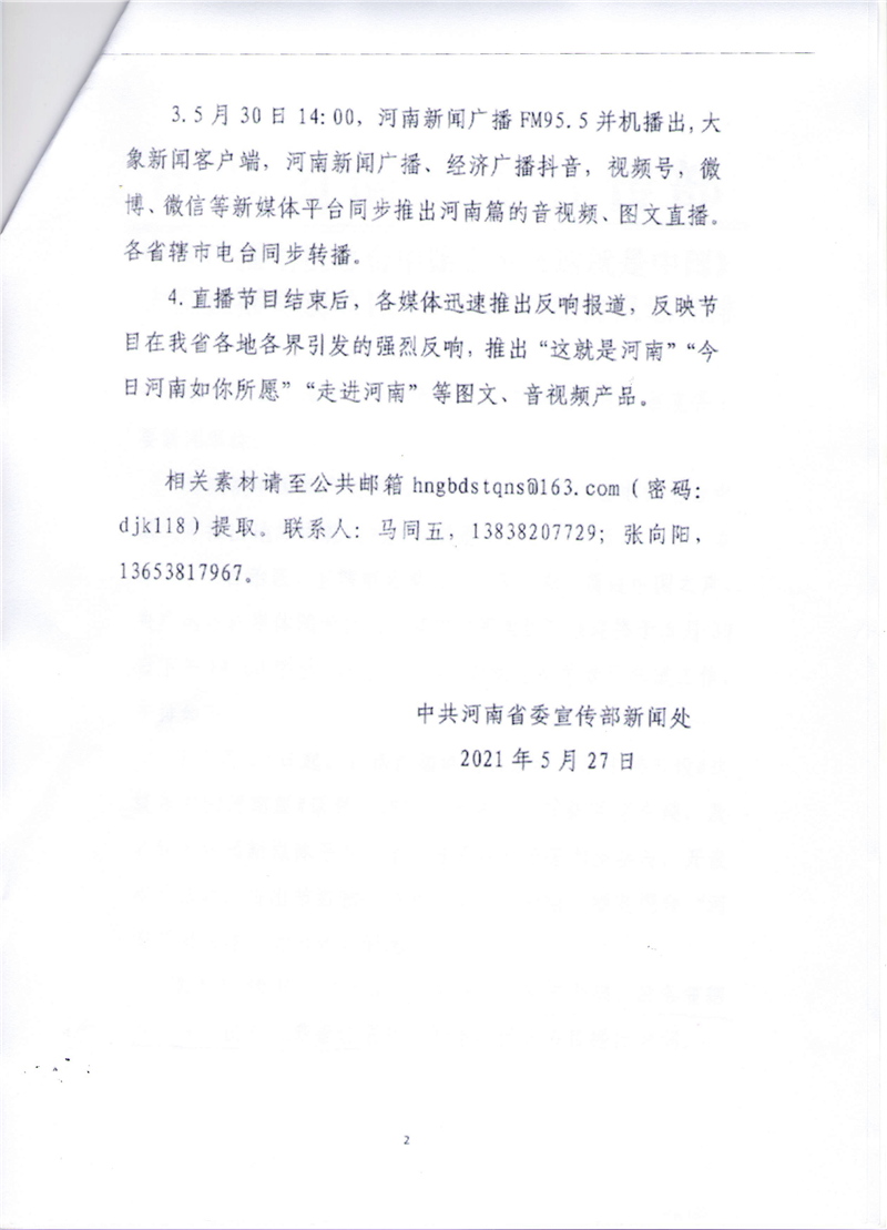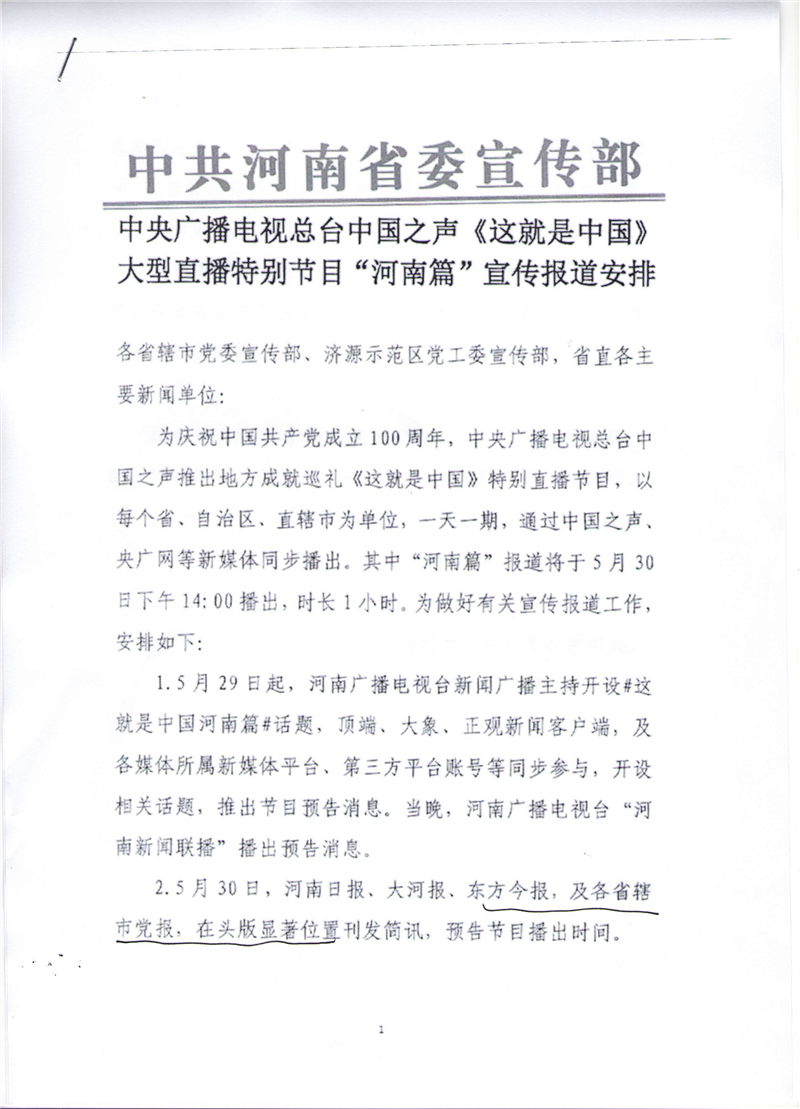 中央广播电视总台中国之声《这就是中国》大型直播特别节目“河南篇”宣传报道安排