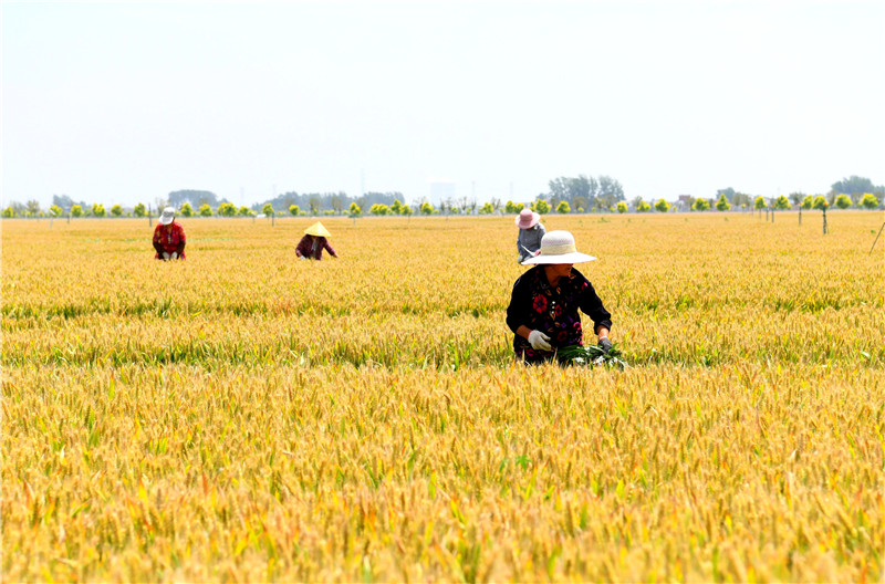 “极目云黄陇已秋,高低遥带日光浮”。眼下,周口大地1100多万亩小麦丰收在望。商水高标准农田示范区的麦田里,挺直的秸秆上挑着蓬乍乍的穗头,熟得那么欢畅。那一片醉人的金黄,将夏月乡村涂染得热烈非凡。那一颗颗饱满的麦粒,犹如农业科技工作者和农民的汗水在田野中闪光。