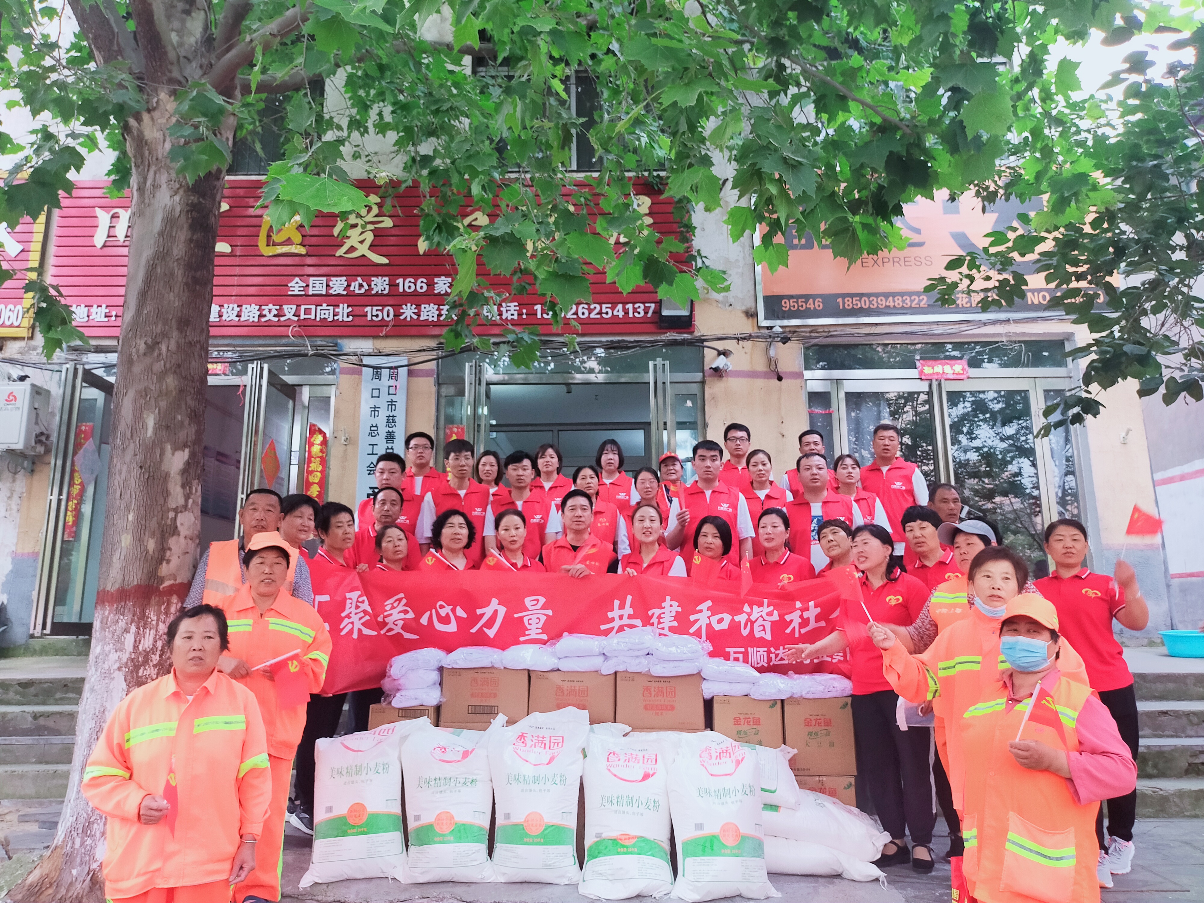 当日早晨,带着提前准备好的40桶食用油、10袋面粉、10箱大米、150件T恤,万顺达商业集团的志愿者来到爱心粥屋,开展“汇聚爱心力量 共建和谐社会”志愿服务活动。到达爱心粥屋后,大家立即忙碌起来,有的志愿者负责搬卸物资,有的志愿者加入到为环卫工人盛饭菜的队伍。