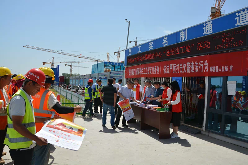 为切实提升政法队伍教育整顿成效,扎实开展“我为群众办实事”实践活动,进一步增强农民工的法律意识,5月28日,郸城司法局法律援助中心、郸城县人社局劳动监察大队联合组成志愿者服务队,来到“建业桂圆”“润城二号院”项目工地,开展“心系农民工,送法进工地”宣传活动。