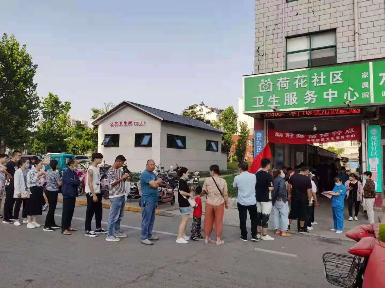 随着大家对新冠疫苗的认知持续加深,群众接种意愿越来越高,更多群众自发前来接种,有的居民早早的就在荷花社区卫生服务中心门口排队等候了,他们在工作人员的指导下,依次做好信息登记,进行疫苗接种。