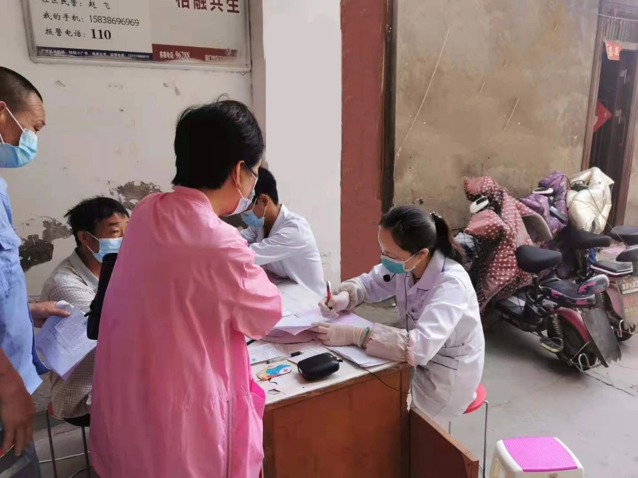 为保证及时解答、登记居民的相关接种问题,问诊医生更是时时“在线”,有时候一坐就是一天,详细向群众询问病史并解答群众提问的问题,有时连上厕所的时间都没有。