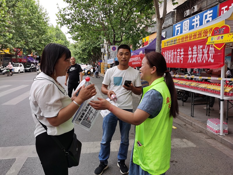 6月7日上午,萤火虫公益的志愿者为等待考生的家长送去矿泉水。当日高考第一天,我市各考点外,不少单位和公益团队设立了服务点,为考生和家长准备了水、降温消暑物品等,为高考助力。③2