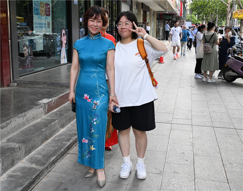 6月7日,在高考考场的警戒线外,穿着旗袍陪考的妈妈们为孩子加油,成为了一道靓丽的风景线。②10
