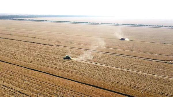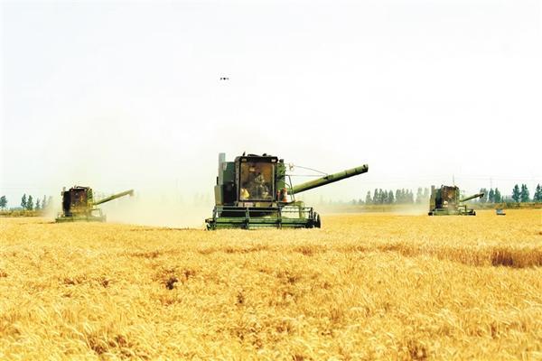 河南周口:黄泛区农场10万亩小麦开镰收割