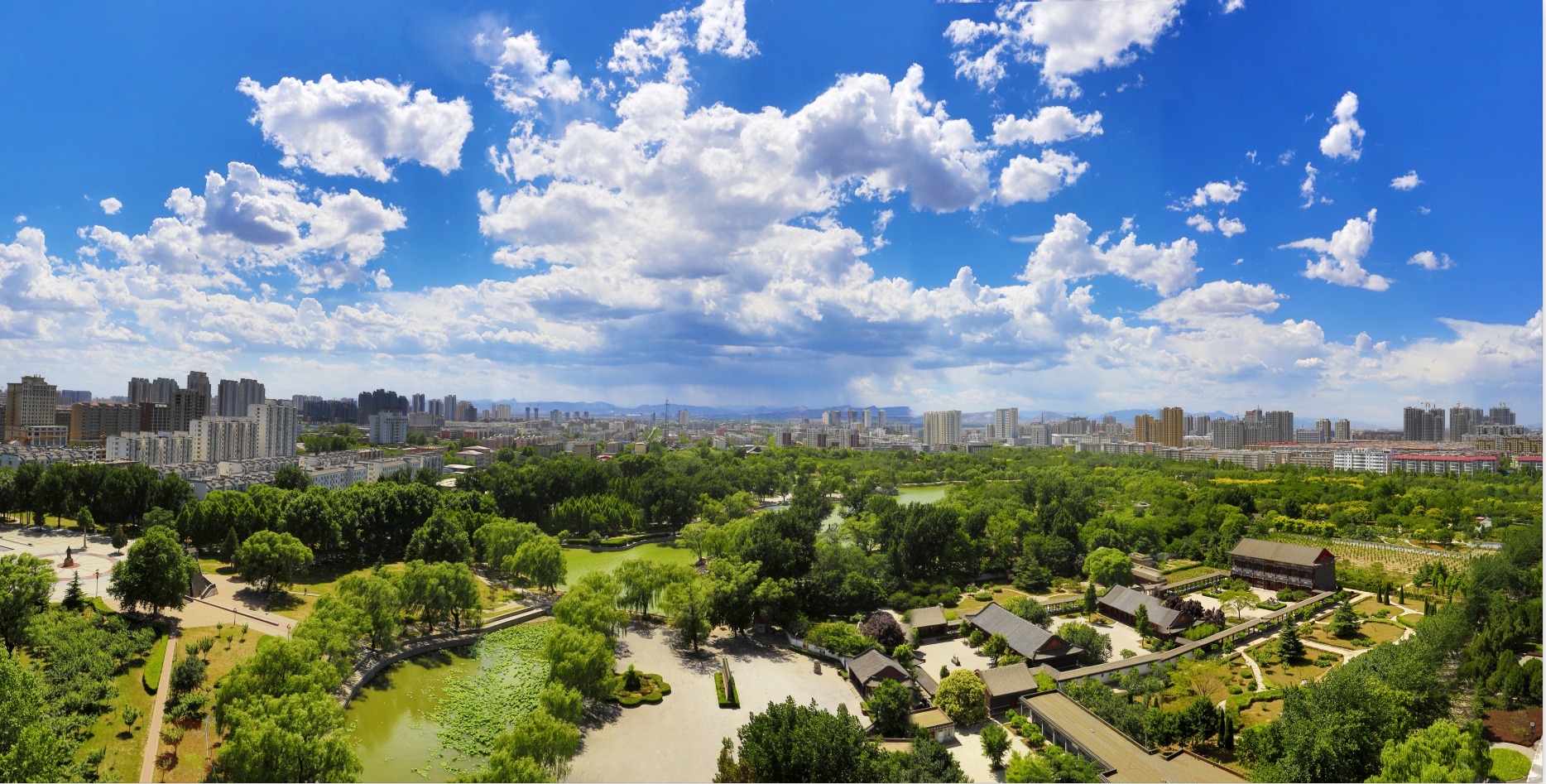图2:近年来,邢台市主城区空气质量持续好转。图为邢台市达活泉公园鸟瞰。(邢台日报社全媒体记者 黄涛 摄)