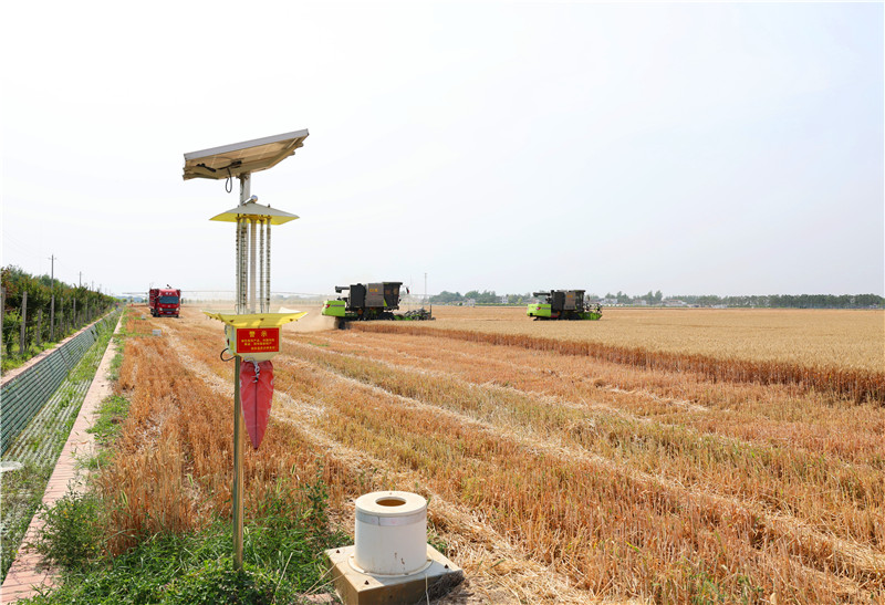“高标准农田的小麦大多选用周麦系列优质小麦品种,从测土配方、供种、耕种、施肥、灌溉、防病虫害、收割,全程统一管理、机械化操作,特别是今年雨水大,在小麦赤霉病、条锈病等防护中进行了全县集中多次喷防,采取了一系列的抗病、抗虫害、抗倒伏防护保丰收举措。加之高标准农田的智慧管护系统,节水降耗、收效良好,让会种田的农民变成了‘慧’种田,4万亩节水灌溉示范区小麦亩均1500多斤,亩均产量比一般农田要高出200斤。”郸城县农业农村局局长柴建振告诉记者。