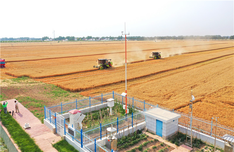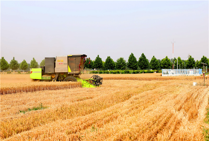 6月8日,三夏小麦收割进入高峰阶段。郸城县高标准农田高效节水灌溉示范区小麦开始大面积收割,记者在现场看到,示范区小麦深受“藏粮于技”的实“慧”,穗大粒饱、喜获丰收,亩均产量在1500斤左右。