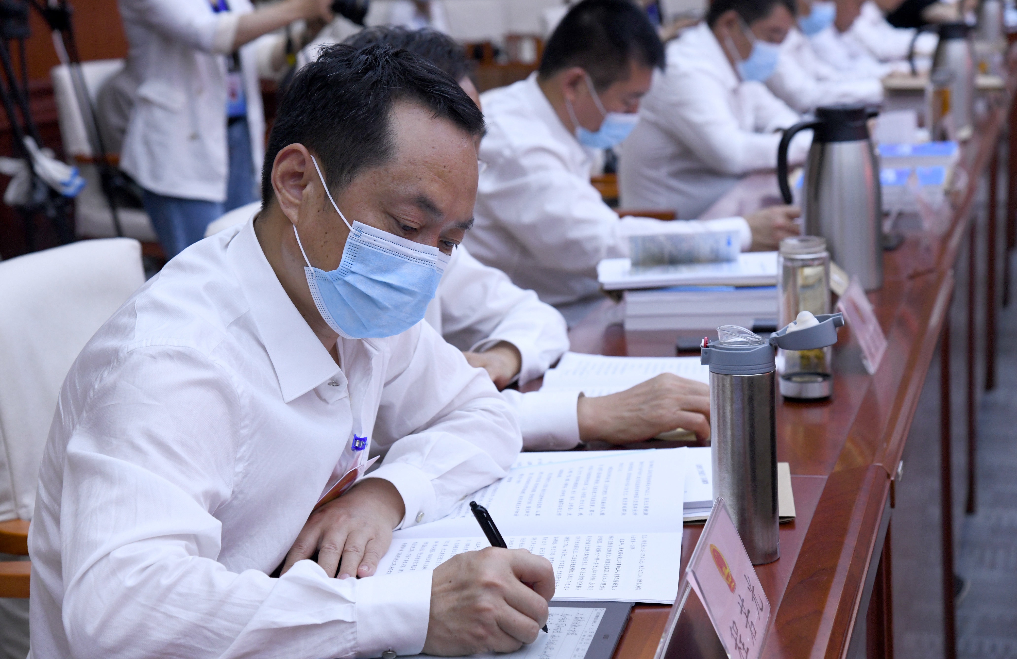 人大代表认真听取人大及两院工作报告