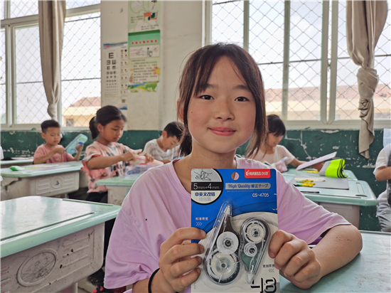 “我的愿望实现了,好开心。谢谢你们!”拿着崭新的书包,孩子们脸上洋溢着幸福的笑容。