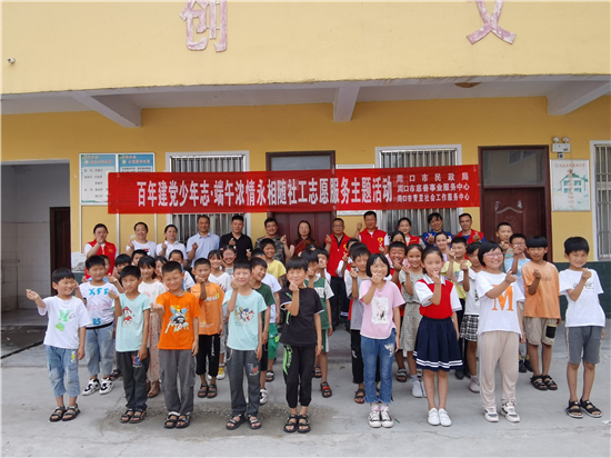 为深入贯彻落实党史学习教育精神和“我为群众办实事”“邻里守望”关爱行动工作要求,端午节前夕,6月11日上午,“百年建党少年志·端午浓情永相随”社工志愿服务主题活动在沈丘县刘庄店镇晏庙小学举行。