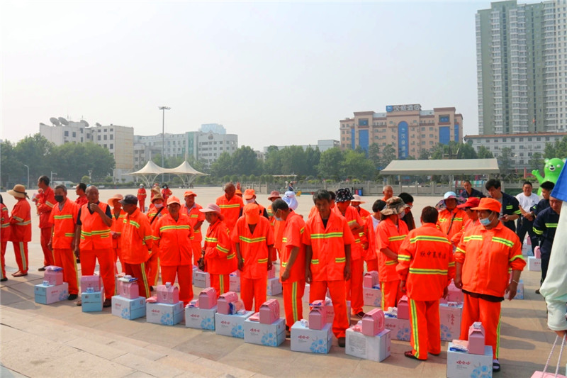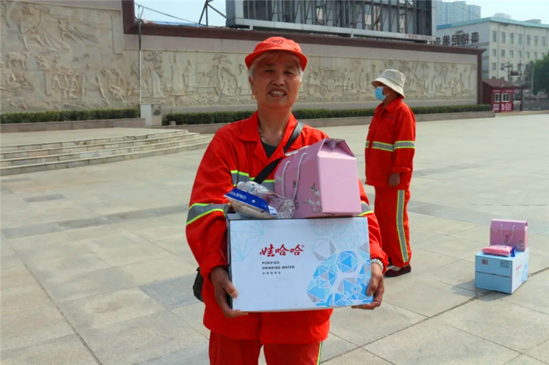 此次活动,中原众恒集团为100余名环卫工人代表送去精心准备的粽子礼盒、矿泉水、毛巾、香皂等慰问品,并向在高温酷暑下辛劳工作的一线环卫工人致敬,感谢他们为周口城市环境卫生所做出的贡献。