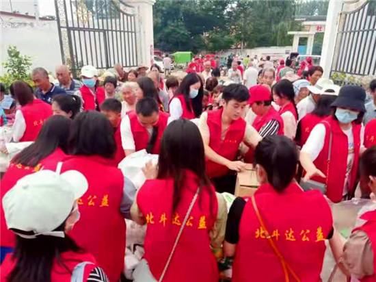 不一会儿,在志愿者组织下,来到现场的老人们便依次排队领取了物品,满脸充满笑容。“每次听说北斗达的孩子们过来给我们包饺子吃,我都高兴得一宿睡不着觉。得知今天孩子们给我们送饺子和粽子吃,我就起了个大早,别提心里多高兴了。”65岁村民李大爷手提着领到的水饺和粽子高兴地对记者说。