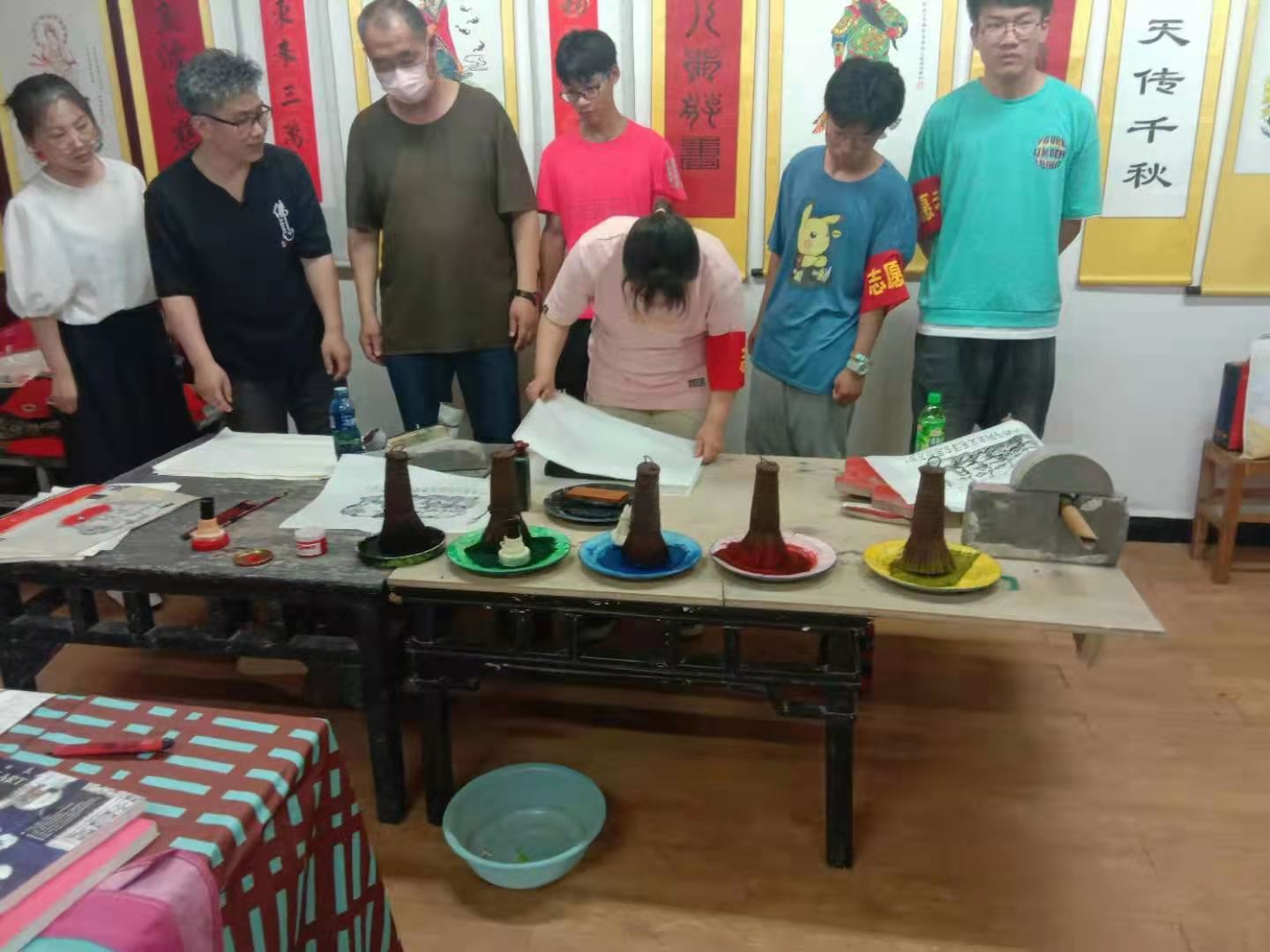 为庆祝文化和自然资源遗产日的到来,弘扬传统年画艺术,6月12日上午,在市文化艺术中心、河南科技职业大学团委、川汇区文化和旅游局等单位的大力支持下,川汇区非遗项目和远长木版年画传承人在市文化馆举办了年画水印工艺现实体验活动。
