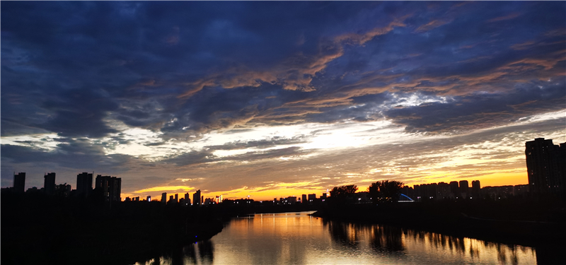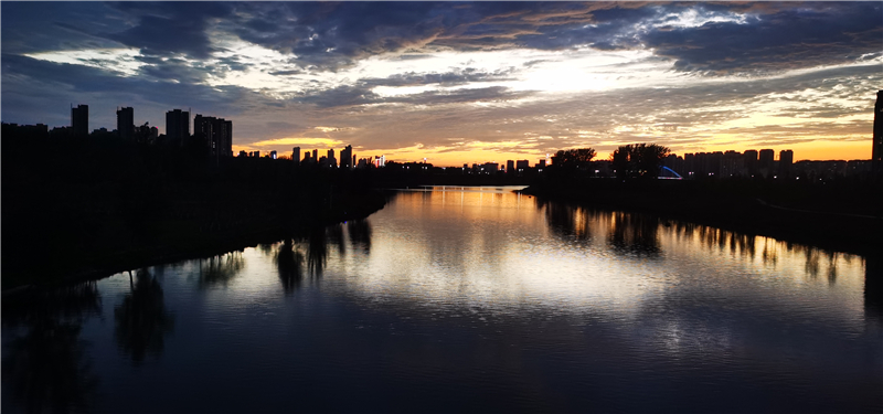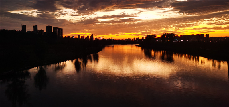 炫美晚霞与沙颍河水面呼应,给我们带来了无限的美景。