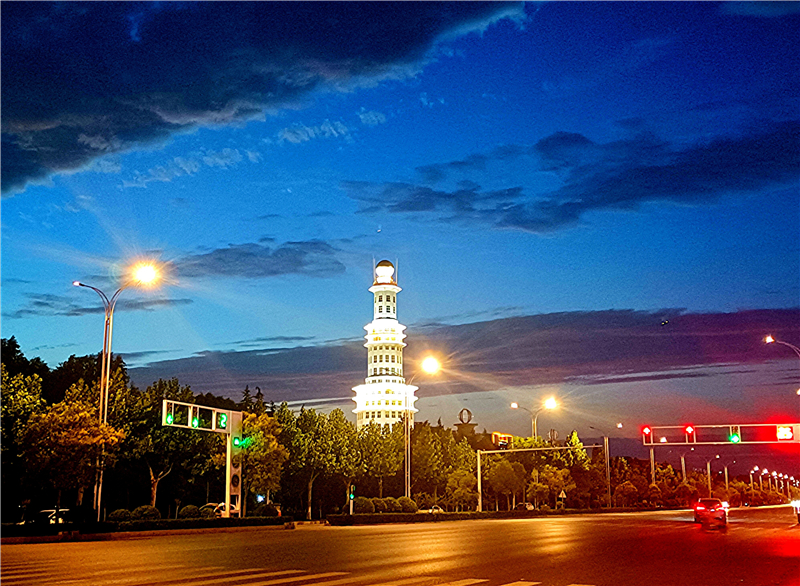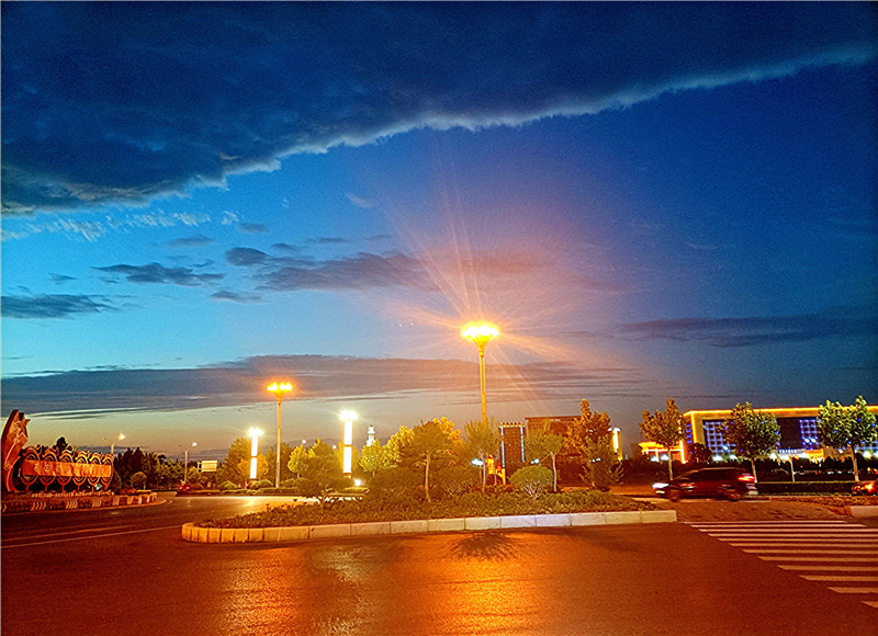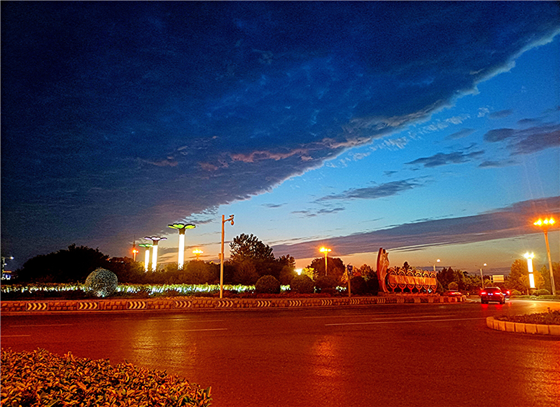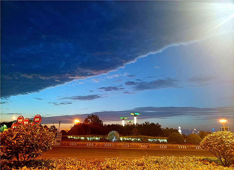 6月20日,夜幕降临,天空的云彩悄悄发生着变化,由深蓝到浅蓝,宛如一幅油画出现在中心城区上空,如此壮丽的天幕在夜景和月光的映衬下,美得令人心动。③3