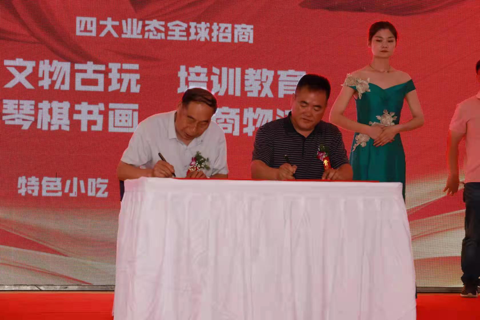 在启动仪式上,作为省重点招商项目的远洋智慧城,与文物古玩,琴棋书画,培训教育,电商物流四大业态的部分商家进行签约。项目总经理曹建新表示,郸城是书法之乡,远洋智慧城除本次《星耀中国》活动后,还将陆续开展全国性书画交流大会、古玩博览会等文化活动,让中原文化、郸城文化、乡镇文化,让文化和经济相互交融,积极推动郸城的文化产业发展。