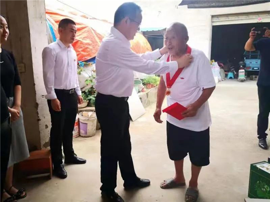 “还能不能记得清入党的日子啊?”“1966年2月19日!别看我年纪大了,这日子永远不会忘!”来到搬口办事处梁寨行政村老党员梁光同家,张建党和其拉起了家常,详细询问他的身体状况和家庭情况,叮嘱随行工作人员要把老党员的冷暖放在心上、抓在手上,多听取他们的意见建议,真心实意为他们办实事、做好事、解难事,多关心、多关怀老党员。“请您要保重身体啊!祝您健康长寿!”张建党为梁光同亲手佩戴“光荣在党50年”纪念章并送上慰问金和慰问品。梁光同激动地说:“感谢党、感谢政府,请组织不要挂念我,党的政策好,我的儿女们也很孝顺,各级干部都很关心群众,现在我是吃得好、住得好,幸福得很!”