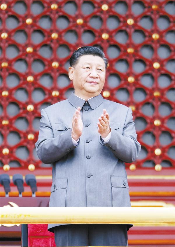 7月1日,庆祝中国共产党成立100周年大会在北京天安门广场隆重举行。中共中央总书记、国家主席、中央军委主席习近平发表重要讲话。这是习近平在天安门城楼上。 新华社记者 庞兴雷 摄