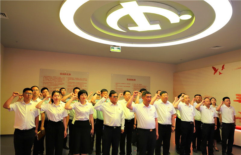 参观学习结束后,孙鹏带领参加活动的全体党员重温入党誓词。