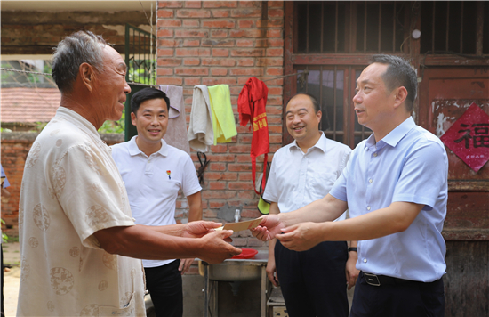 7月1日,在中国共产党成立100周年之际,周口港区管委会主任程若光带领机关党委、李埠口乡党委等单位主要负责同志,到苑寨行政村慰问老党员。