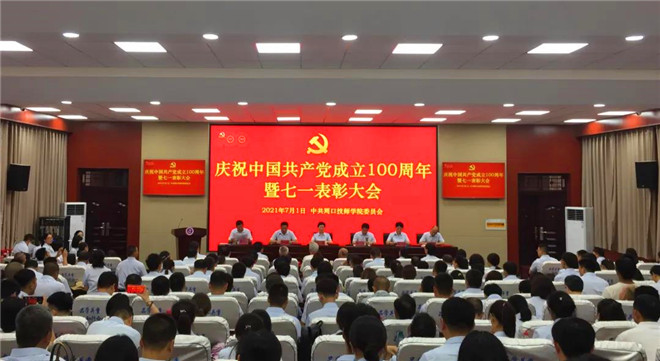 为缅怀党的光荣历史,弘扬党的优良传统,表彰一批先进集体和个人,传承发扬艰苦奋斗的奉献精神,7月1日下午,周口技师学院隆重召开庆祝中国共产党成立100周年暨表彰大会。学院领导班子成员和全体教职工、学生党员参加了表彰大会。