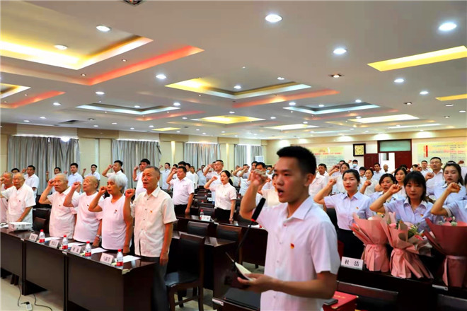 大会在庄严的国歌声中拉开序幕。随后,全体党员以满腔的热情,面向党旗,重温入党誓词。党旗熠熠生辉,誓言铿锵有力,展现了新时代电力人为党的事业奋斗终生的信心和决心。