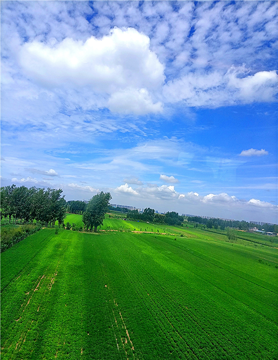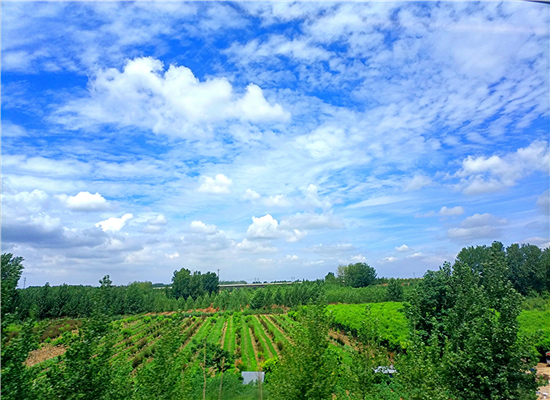 近日,我市天气晴朗,蔚蓝的苍穹上,像棉花似的白云悠闲地散着步,俯瞰着绿意盎然的三川大地,这样一副天蓝地绿云悠远的绝美的风景令人心旷神怡。