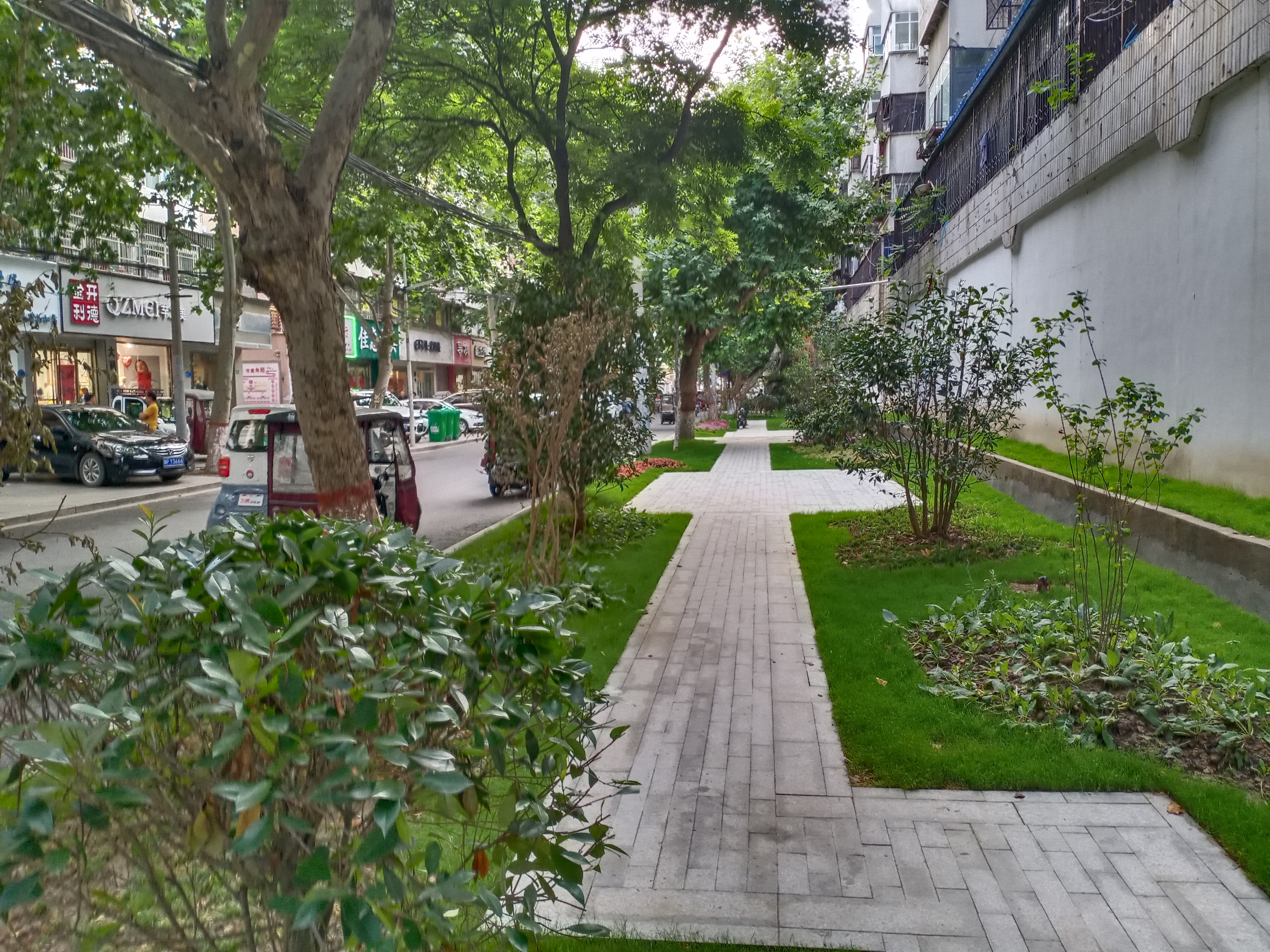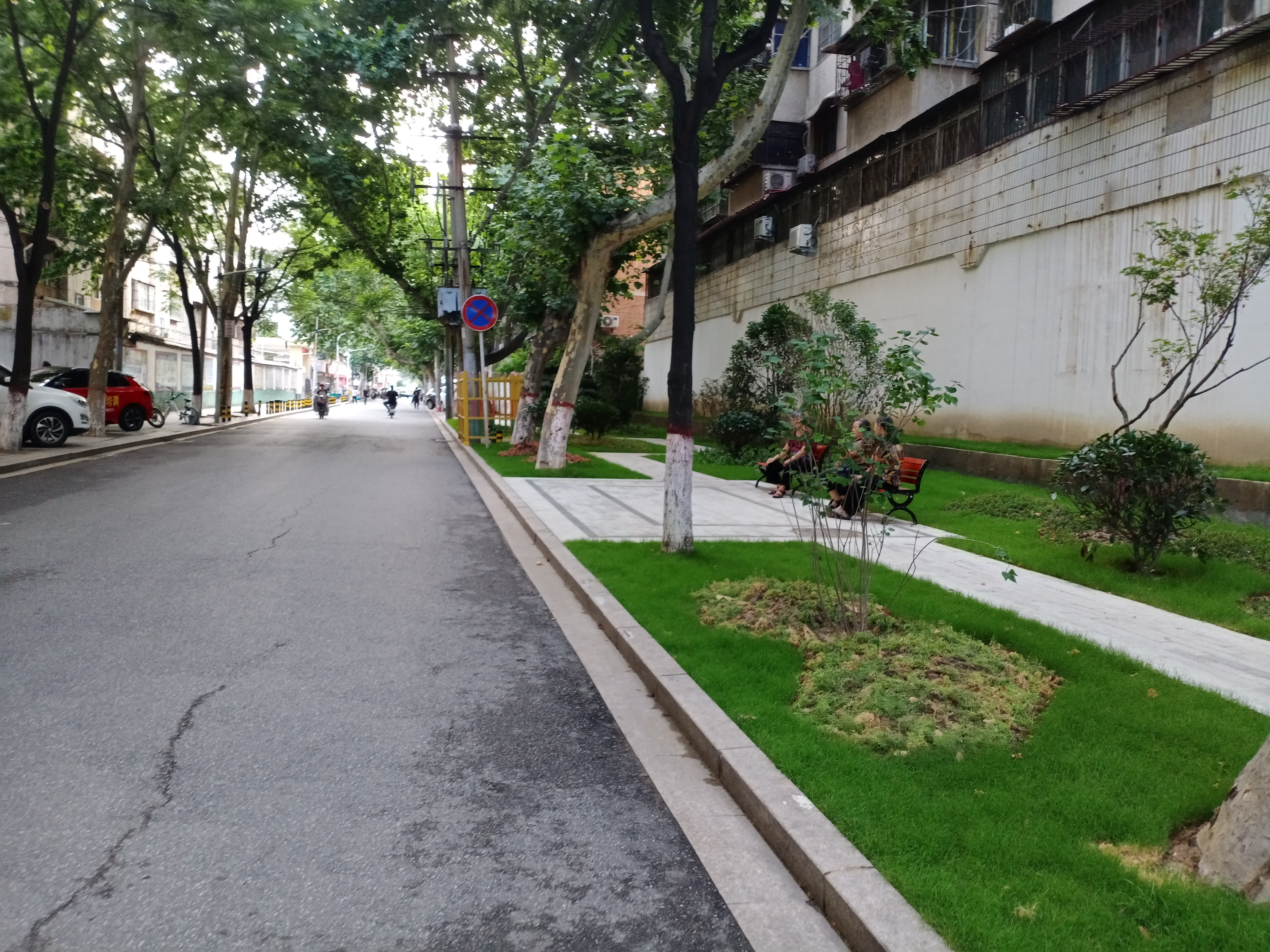 7月8日,记者在周口市六一路小学大门口附近看到,一个布满绿地、景观树、花草的小型街头游园亮相在育新街的道路边。市民在闲暇之余,可以选择坐在树荫下的凳子上休息娱乐,给人带来别样的享受。