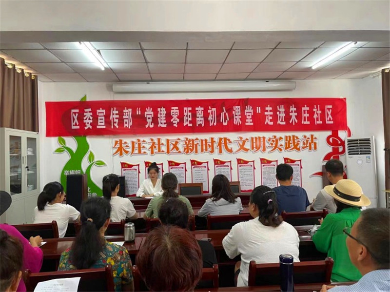 为推动党史学习教育走深走细走实,7月9日下午,区委宣传部在金海路街道办事处朱庄社区开展“党史教育进基层”暨“党建零距离初心课堂”活动。