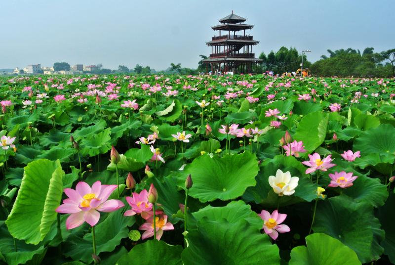 图2:“接天莲叶无穷碧,映日荷花别样红”的AAAA级荷美覃塘景区。图片由贵港日报社提供
