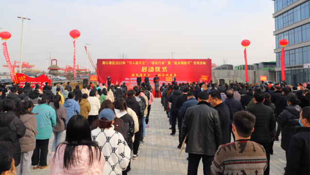 2月22日,周口港区举办2022年“万人助万企”“春风行动”暨“就业援助月”启动仪式,通过举办一系列活动,为企业和求职者牵线搭桥。港区党委书记孙鹏宣布启动仪式开幕,管委会主任胡军华在仪式上致辞,港区领导杜广贤、刘学庆、李素芹参加活动。