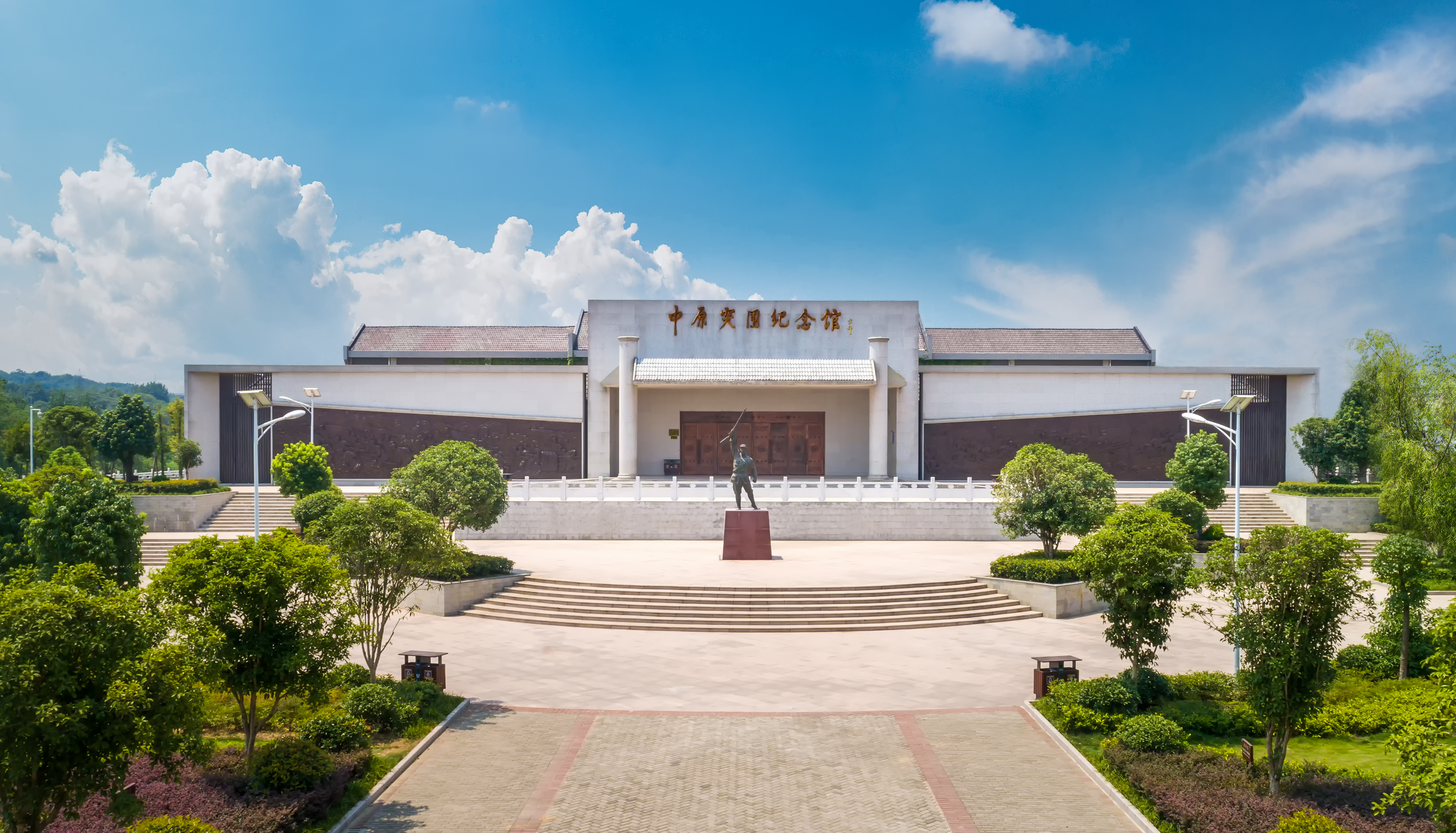 初夏时节,位于大悟县宣化店镇的中原突围纪念馆,大批参观者排队进入。纪念馆前,一尊年轻战士的塑像巍然挺立,战士左手拳头紧握,右手高举长枪,神情激昂刚毅,让人肃然起敬。