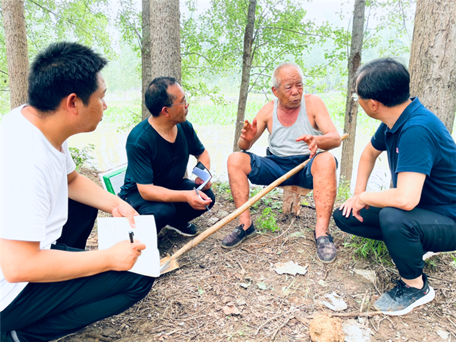 记者张猛(前二)前往西华县聂堆镇贾鲁河险工段采访。