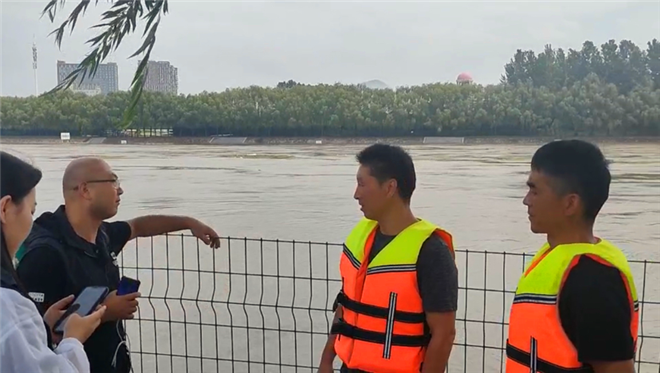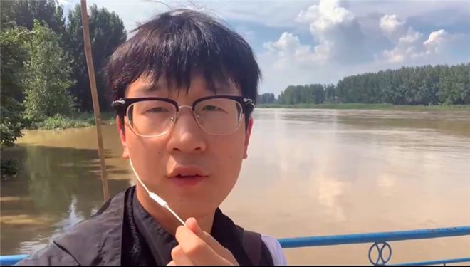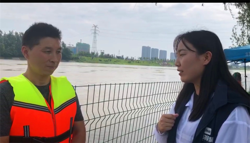 记者王丹、房杰等来到贾鲁河桥小闸附近进行直播