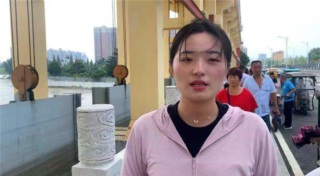 记者何晴在周口市中心城区汉阳中路周口大闸采访