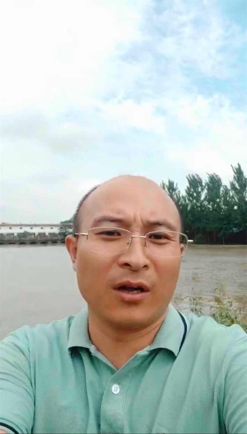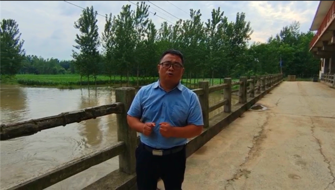 记者轩洋在扶沟县北关大闸介绍水位情况