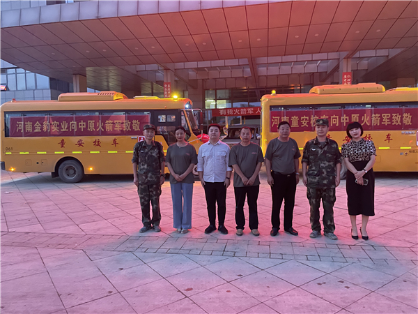 汛情发生以来,赵金豹主动向太康县退役军人事务局请战,决定出动校车100辆,运载力可达3000人次;退役军人86人、志愿者120人整装待发,随时可奔赴抗洪抢险第一线。赵金豹通过网络得知很多家乡人因郑州市暴雨被迫滞留后,第一时间组织12辆爱心车队前往郑州,连续3天,每天往返2次,将滞留在郑州的太康人免费安全接回家。当得知常营镇外来很多西华、扶沟避汛群众,赵金豹立即自筹方便面、矿泉水等生活必需品,带着满载物资车辆分别走进了常营镇外来避汛群众各个安置点。“作为一名党员,我有责任有义务去帮助困难群众;作为一名退伍军人,在国家大灾大难面前,我始终做到退伍不褪色,如果我年轻几十岁,一定也会奋战在防汛救灾第一线。”赵金豹说。