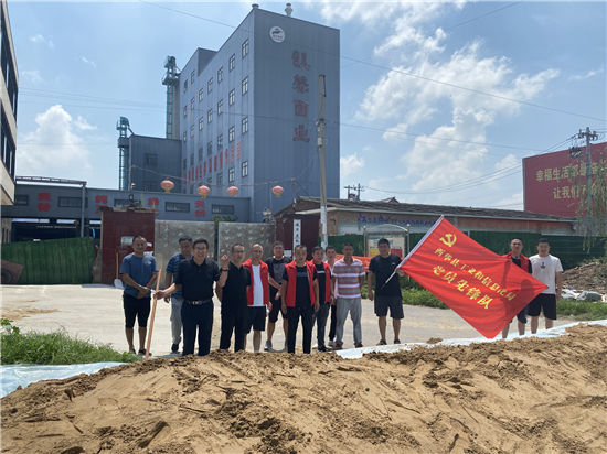 西华县“万人助万企”活动办公室副主任、县工信局局长赵宏伟立即向县“万人助万企”指挥部进行了汇报,并组织工信局防汛应急突击队16名队员迅速赶往西华县凯馨面粉厂,装沙袋,加固粮仓,运沙土,筑牢厂区第一道防水隔离带。防汛应急突击队队员仅用2个小时的时间完成了企业的防汛要求,企业负责人十分满意。 ③7