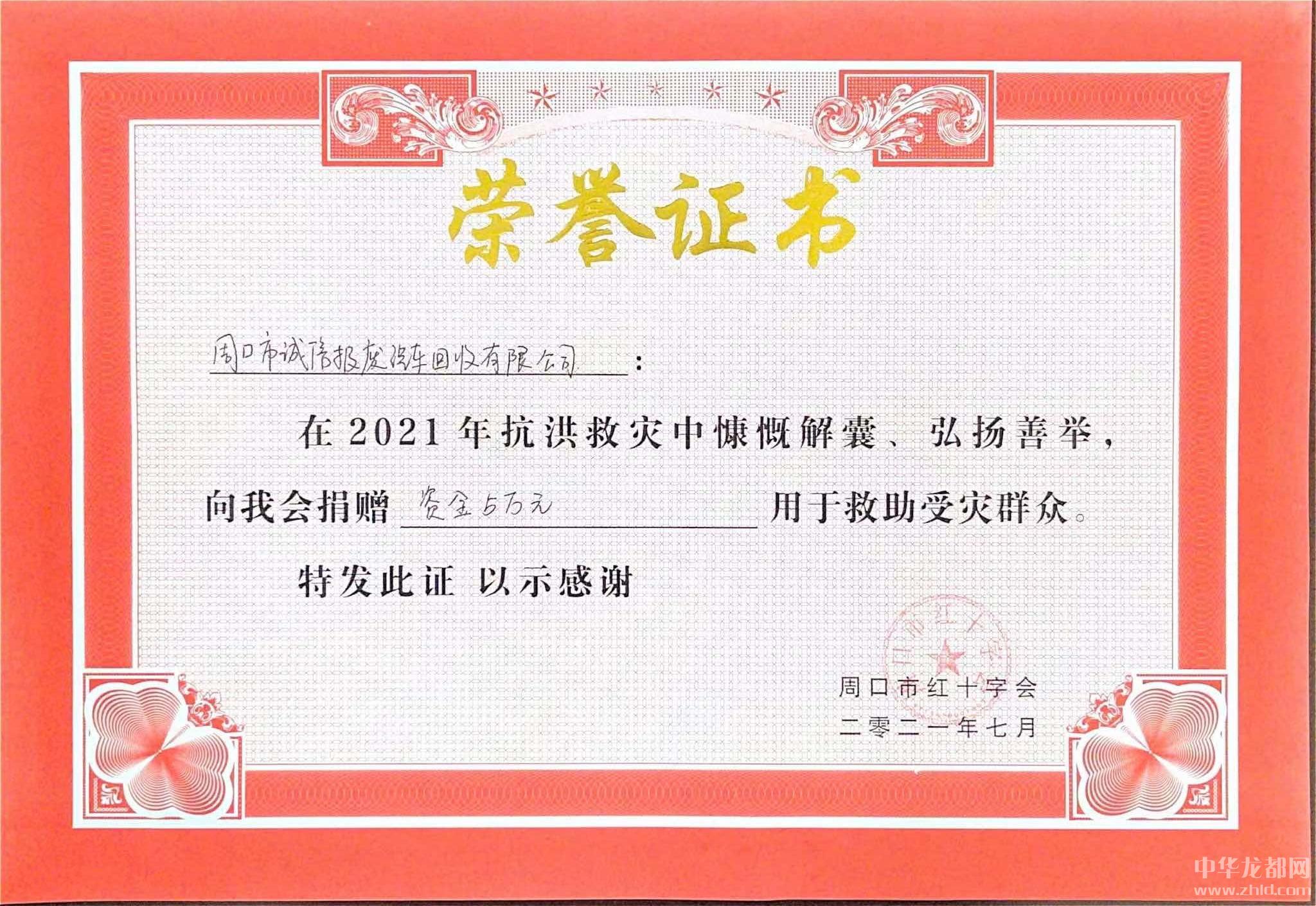 同时,张站国作为周口市诚信报废汽车有限公司负责人,为切实履行企业的社会责任,周口市诚信报废汽车有限公司于2021年7月27日向周口市红十字会捐赠现金人民币5万元,用于防汛救灾、群众帮扶、卫生防疫和灾后重建工作。