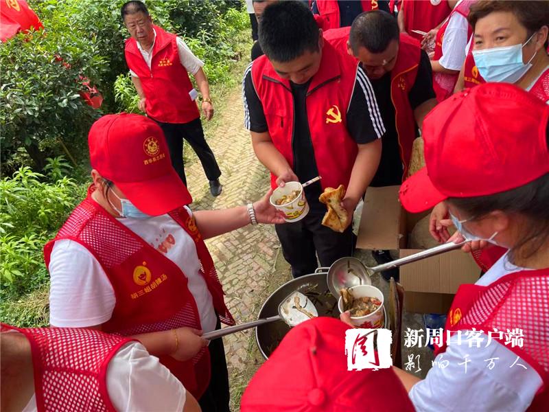 爱心涌动显真情。三所楼村、后石羊村、黄桥村、裴庄村、肖横村等自发成立了防汛救灾志愿者服务队,特别是三所楼村支部书记李位霞带领村志愿者每天炕油馍、炖鸡子等,为县应急救援物资储备点工作人员和志愿者送去爱心餐;后石羊村志愿者也自发为储备点送去饭菜,并帮助装卸救灾物资;黄桥村志愿者帮助储备点和乡党委、政府装卸物资,他们都是无怨无悔、真情奉献。还有一些不愿透露姓名的黄桥籍和外地爱心人士也捐赠生活物资,他们有的是企业老板、退役军人、有的在湖北、广州、郑州、周口等地工作,主动为防汛救灾伸出援助之手。②5